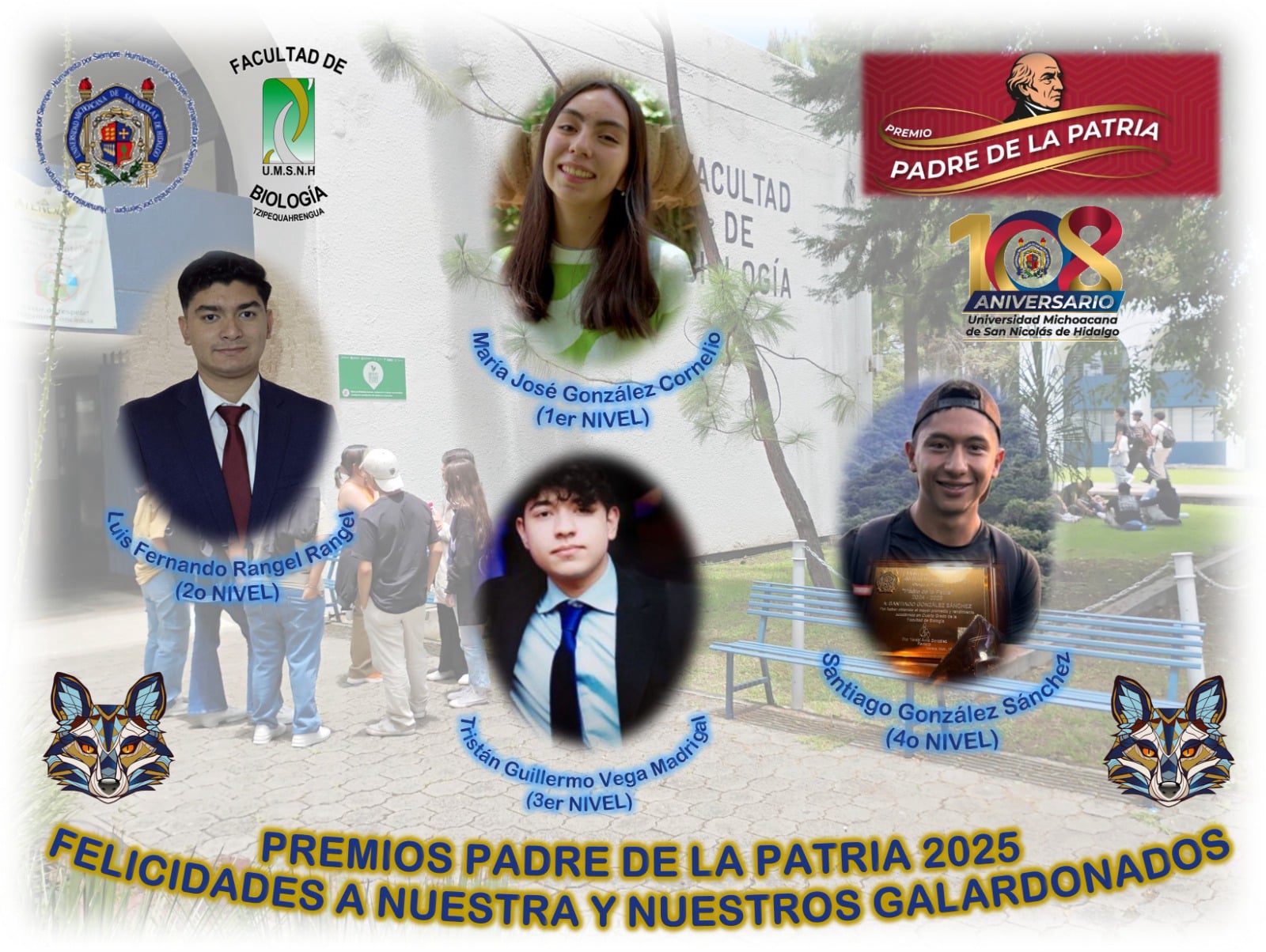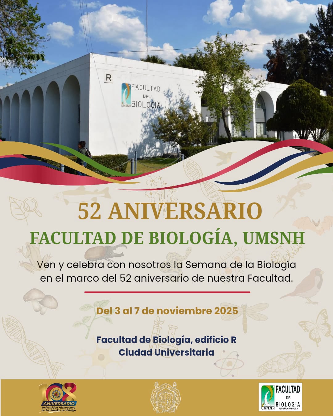 Las y los alumnos de la Facultad de Biología felicitan a la Universidad Michoacana de San Nicolás de Hidalgo por su aniversario. ¡Gracias por su liderazgo y compromiso con la educación!